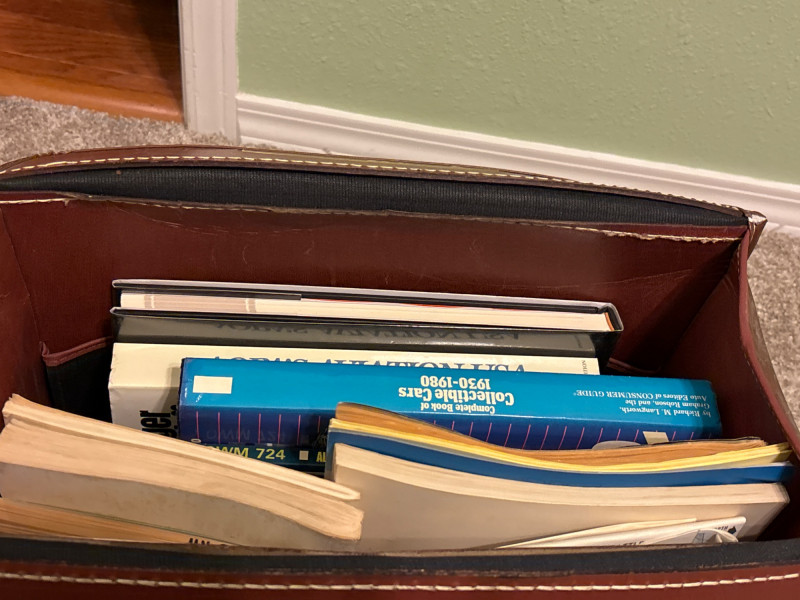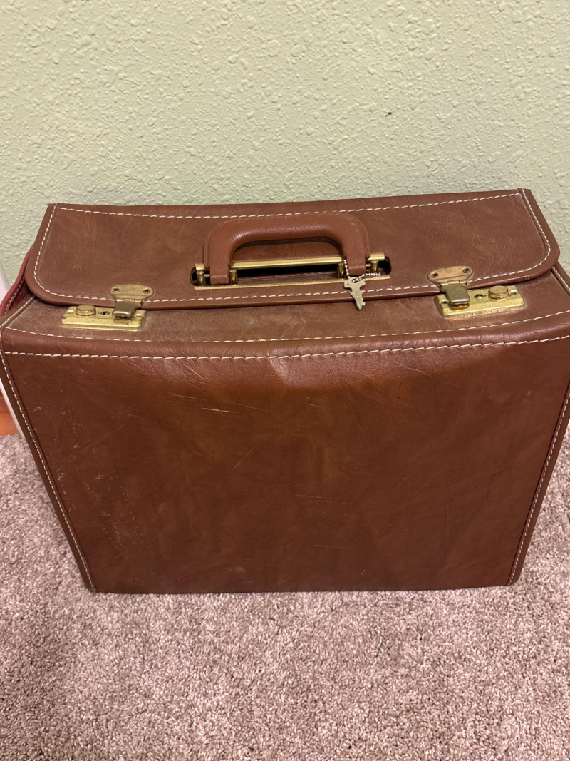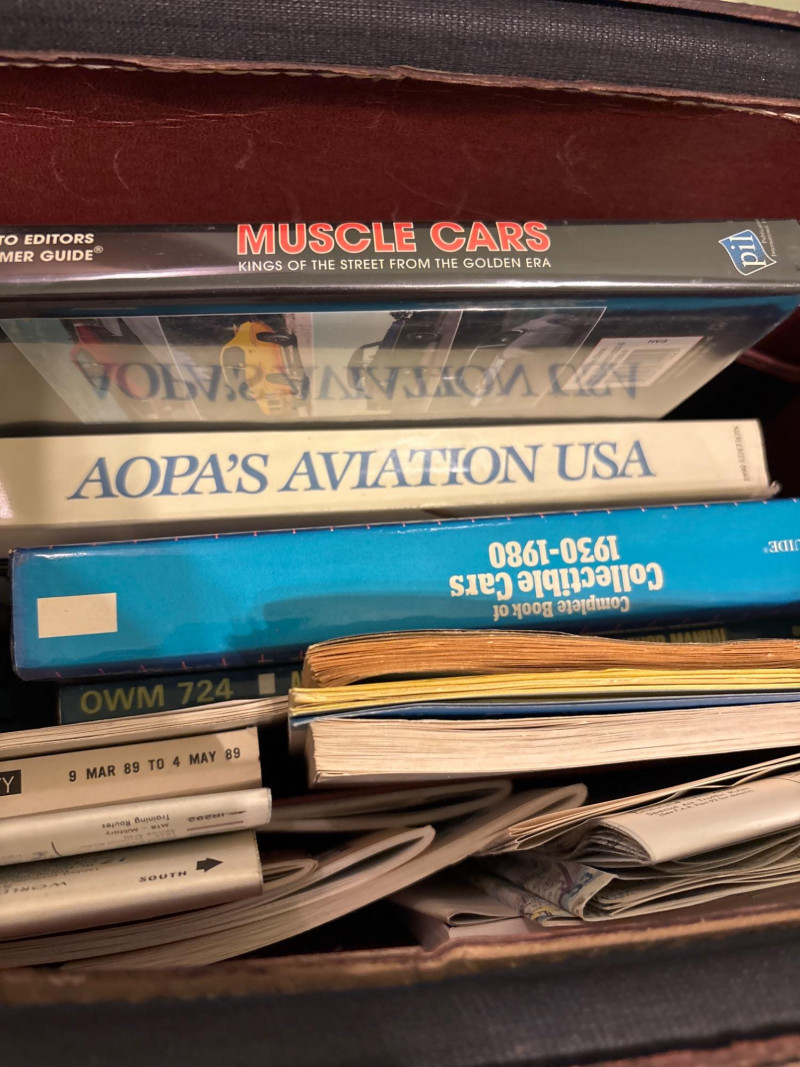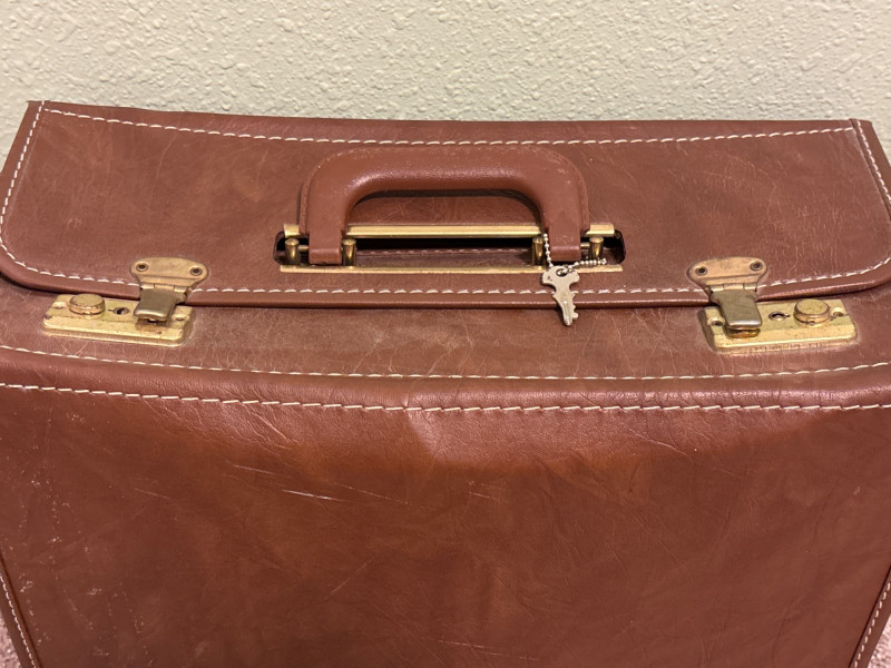 A working lock, a real key—and a story inside. Step back into a time of analog navigation and classic craftsmanship with this vintage leather locking briefcase, filled with an interesting assortment of aviation materials, maps, and automotive-related books. The briefcase itself features rich brown leather, sturdy construction, and brass-tone locking hardware—and includes the original key with a working lock, a rare and highly desirable feature. This adds both functionality and authenticity to the piece. Inside, you’ll find a curated mix of vintage aviation manuals, folded maps, booklets, and reference materials, along with automotive-themed books—making this a unique and nostalgic collection. Whether you’re a collector, aviation enthusiast, or simply appreciate vintage pieces with character, this lot offers both display appeal and historical interest. The briefcase alone makes a fantastic décor or storage piece, while the contents add an extra layer of intrigue. Briefcase shows age-appropriate wear with patina to the leather and hardware consistent with vintage use. Lock functions and key is included. Contents are pre-owned with varying wear from age and handling. Please review photos for full condition details. Shipping available. We are happy to combine shipping on multiple items when possible.