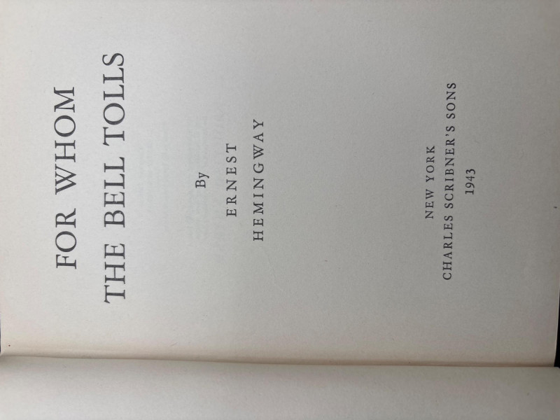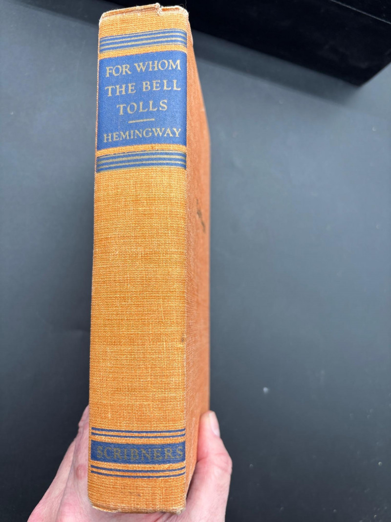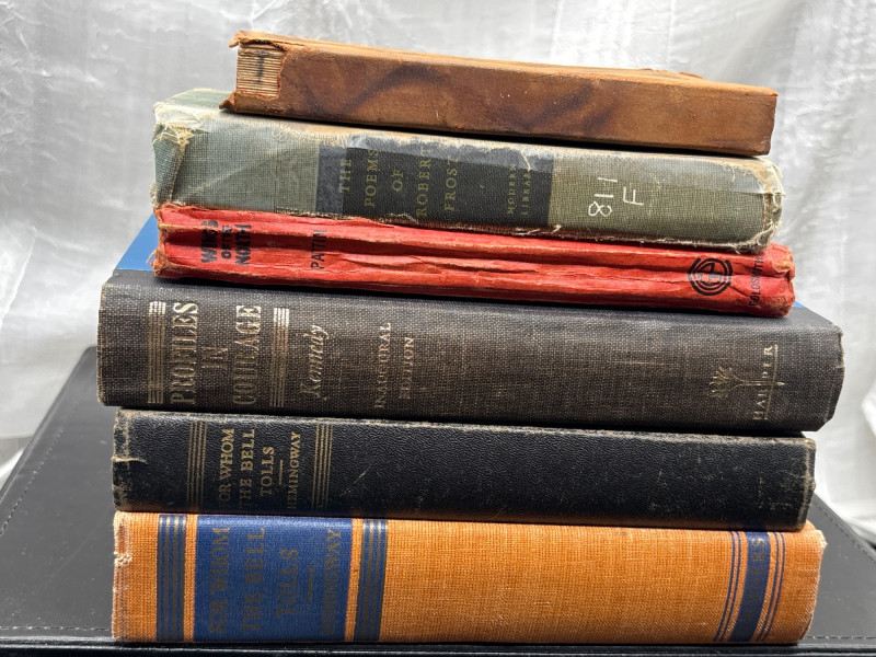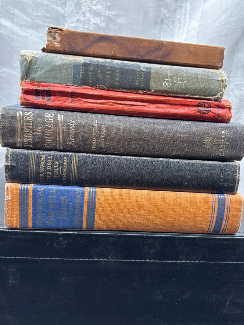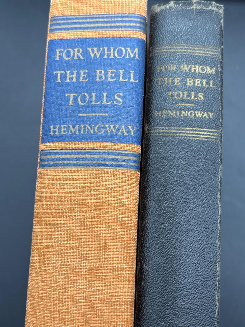 • Religious and inspirational volumes, including “For Whom the Bell Tolls” by Ernest Hemingway (mid-century edition)