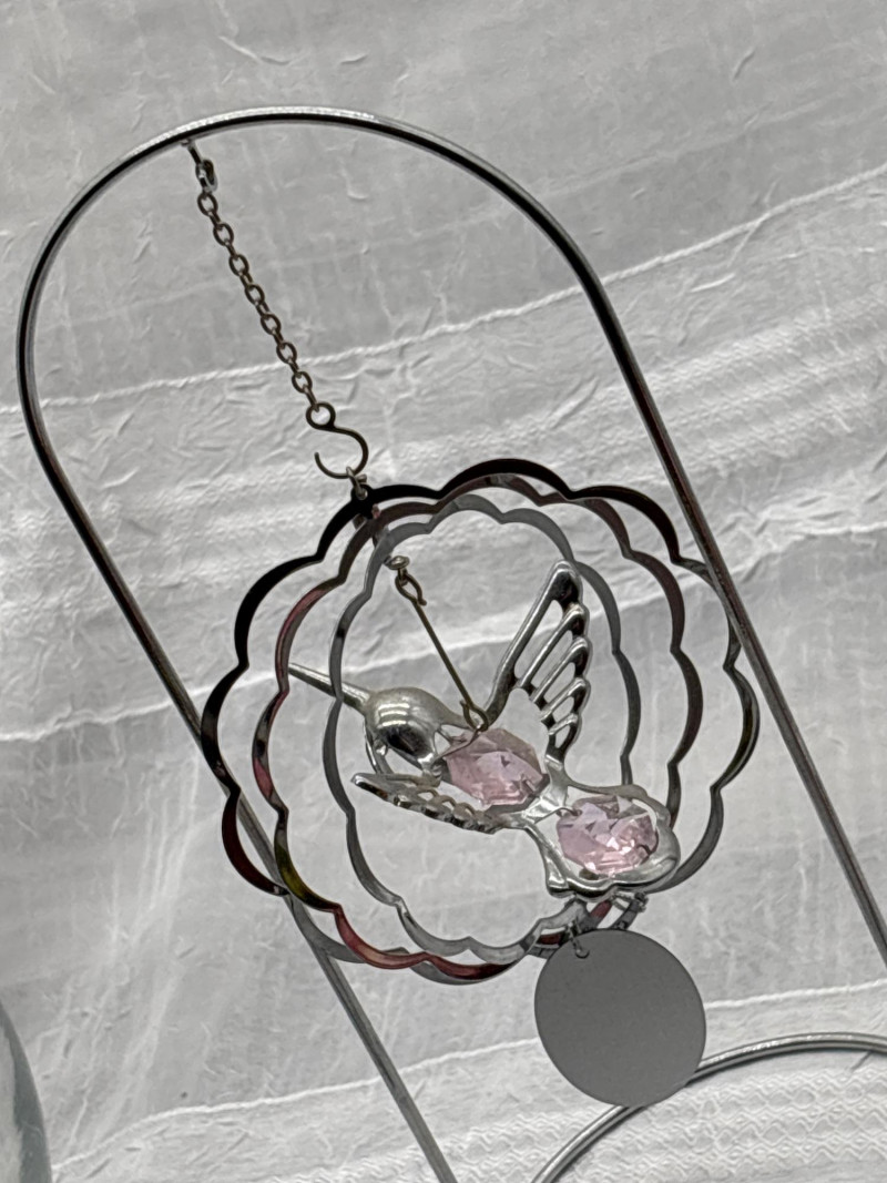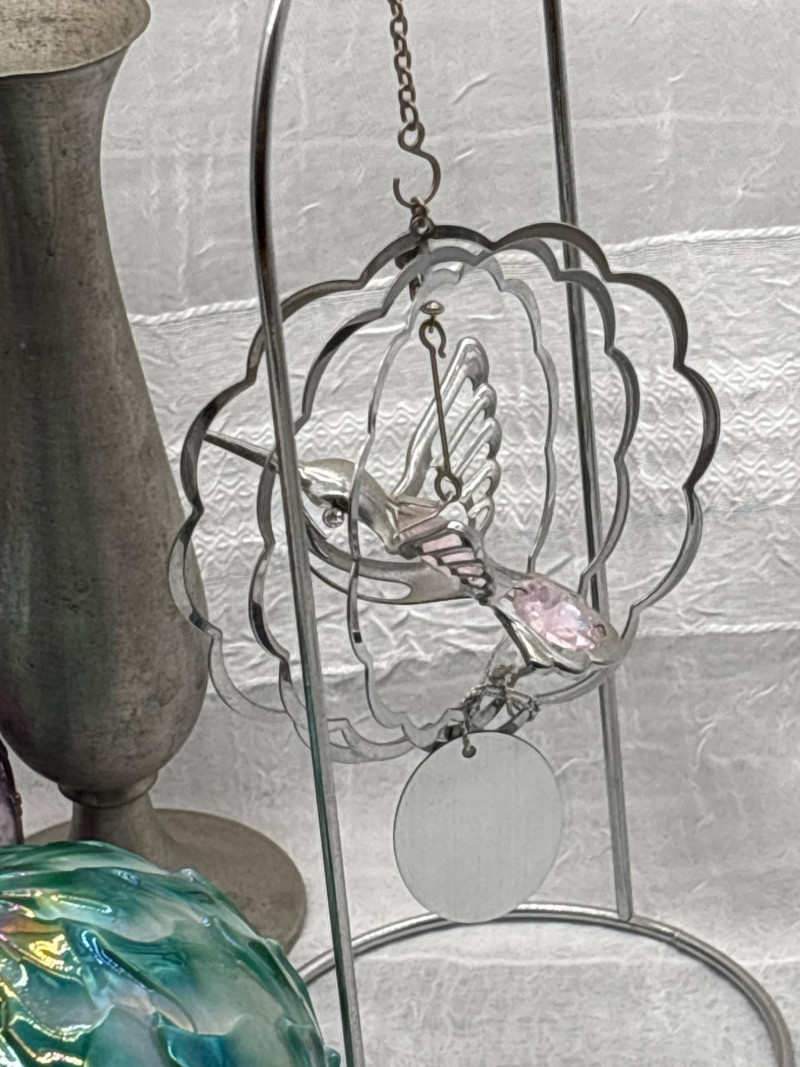 • Metal hummingbird hanging décor (approx. 8" tall)