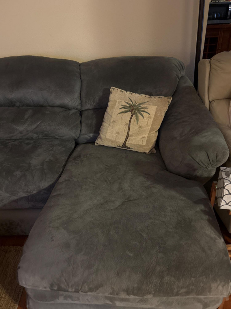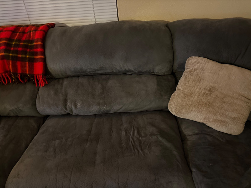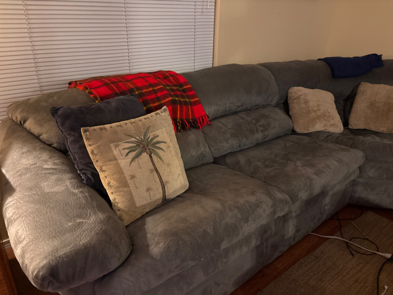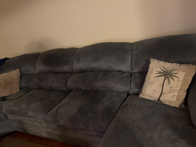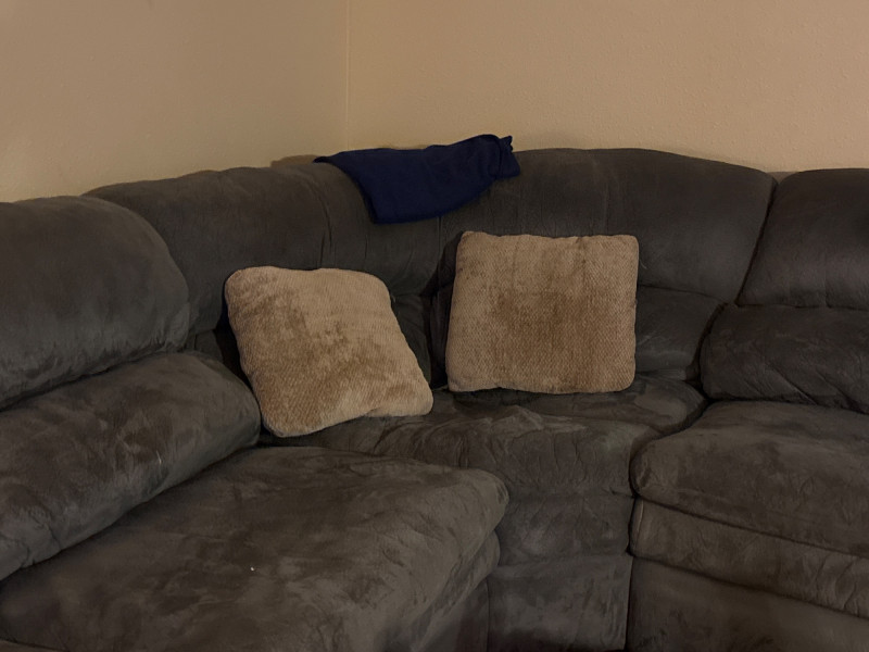 Spacious, comfortable seating with built-in guest bed. Comfortable and generously sized sectional sofa featuring a built-in hide-a-bed sleeper, perfect for both everyday lounging and overnight guests. This sectional offers deep seating, supportive cushions, and a cozy feel that makes it ideal for living rooms, family spaces, or rental properties. The neutral tone blends easily with a variety of décor styles. The pull-out sleeper provides added functionality—great for hosting without needing a separate guest bed. Pre-owned with visible wear from use (see photos). Shows some discoloration and typical use marks. Sleeper mechanism present. Sold as-is—please review photos carefully. Local pickup only due to size. Bring help and appropriate vehicle for removal.