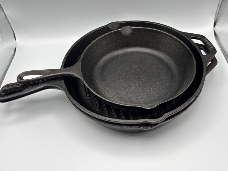 Lot # 153 - Lodge Cast Iron Skillet Set Grill Pan Fry Pan Pre-Seasoned
