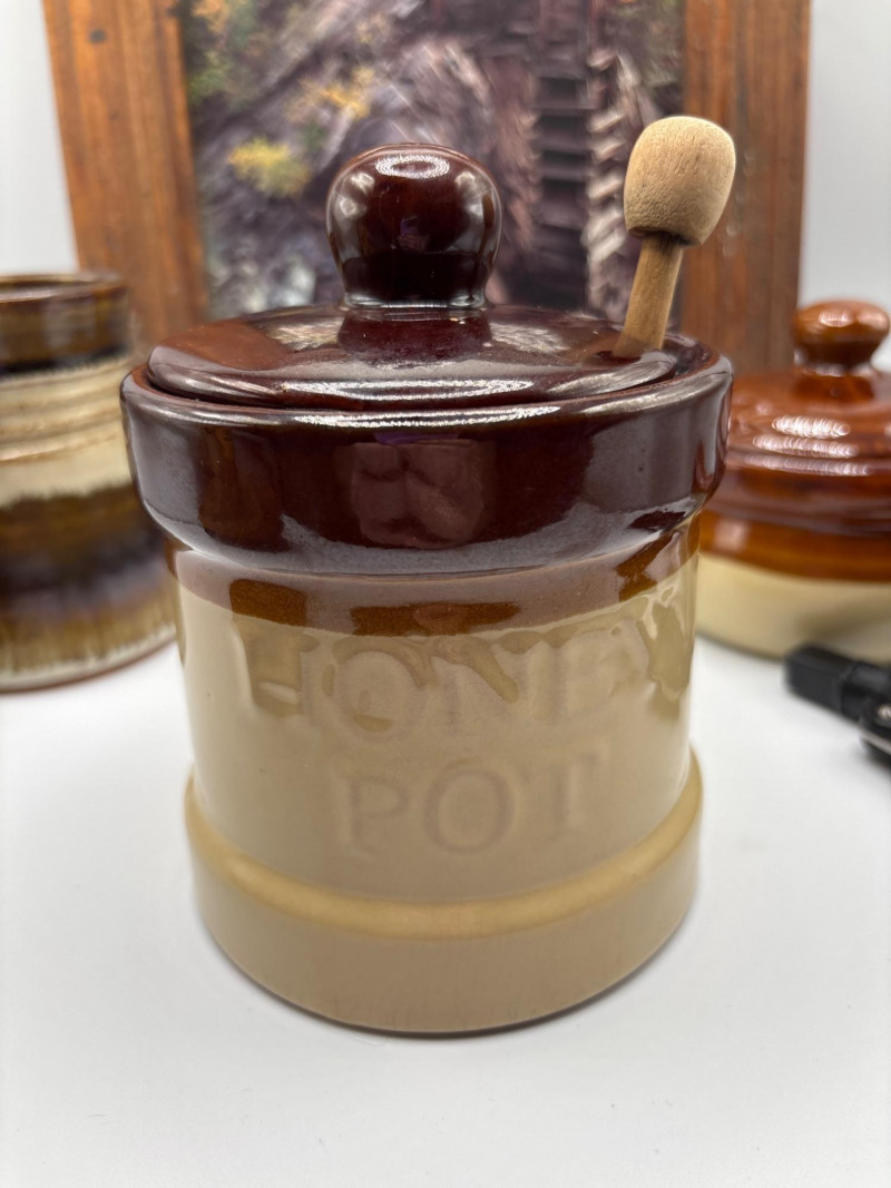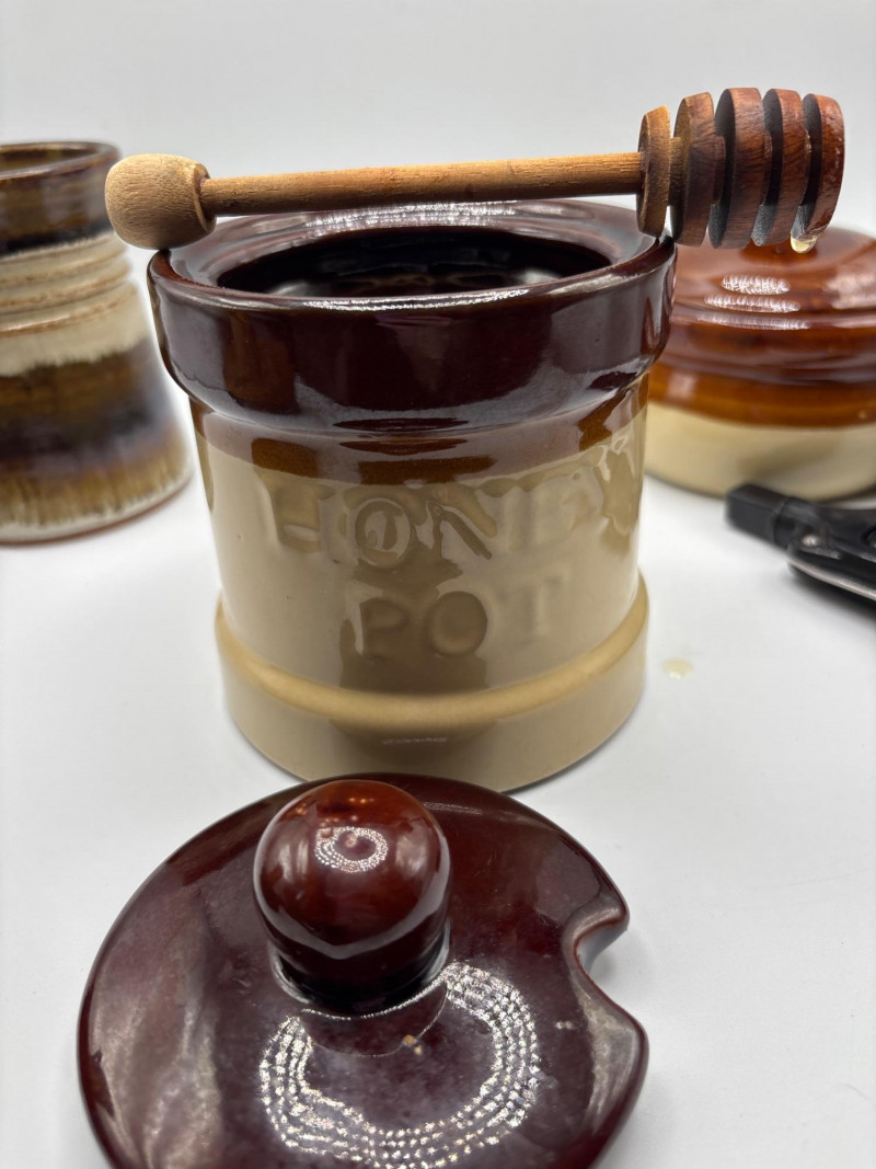 • Honey pot with lid and wooden dipper