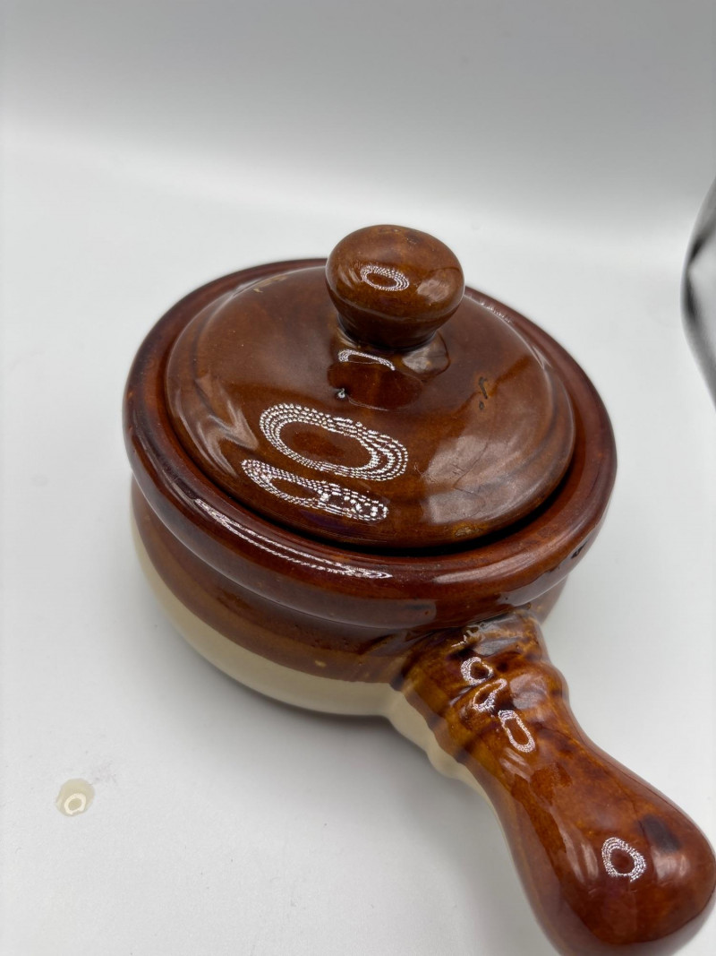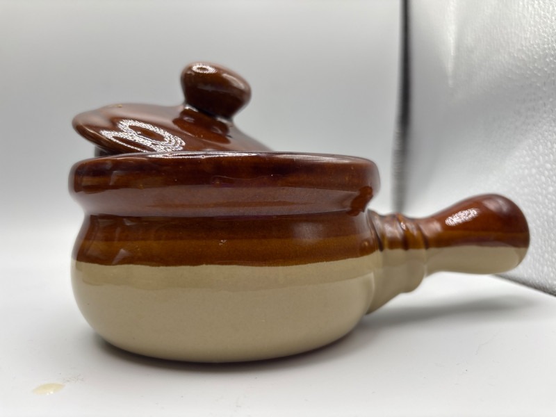 • Brown stoneware handled dish (great for soup, dip, or baking)