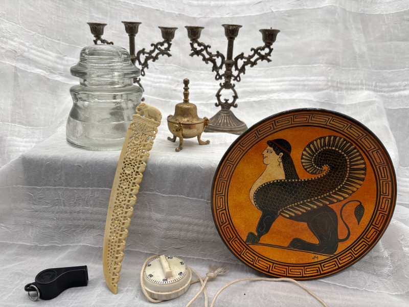 Lot # 171 - Eclectic Decor Lot Brass Candelabra Plate Insulator More
