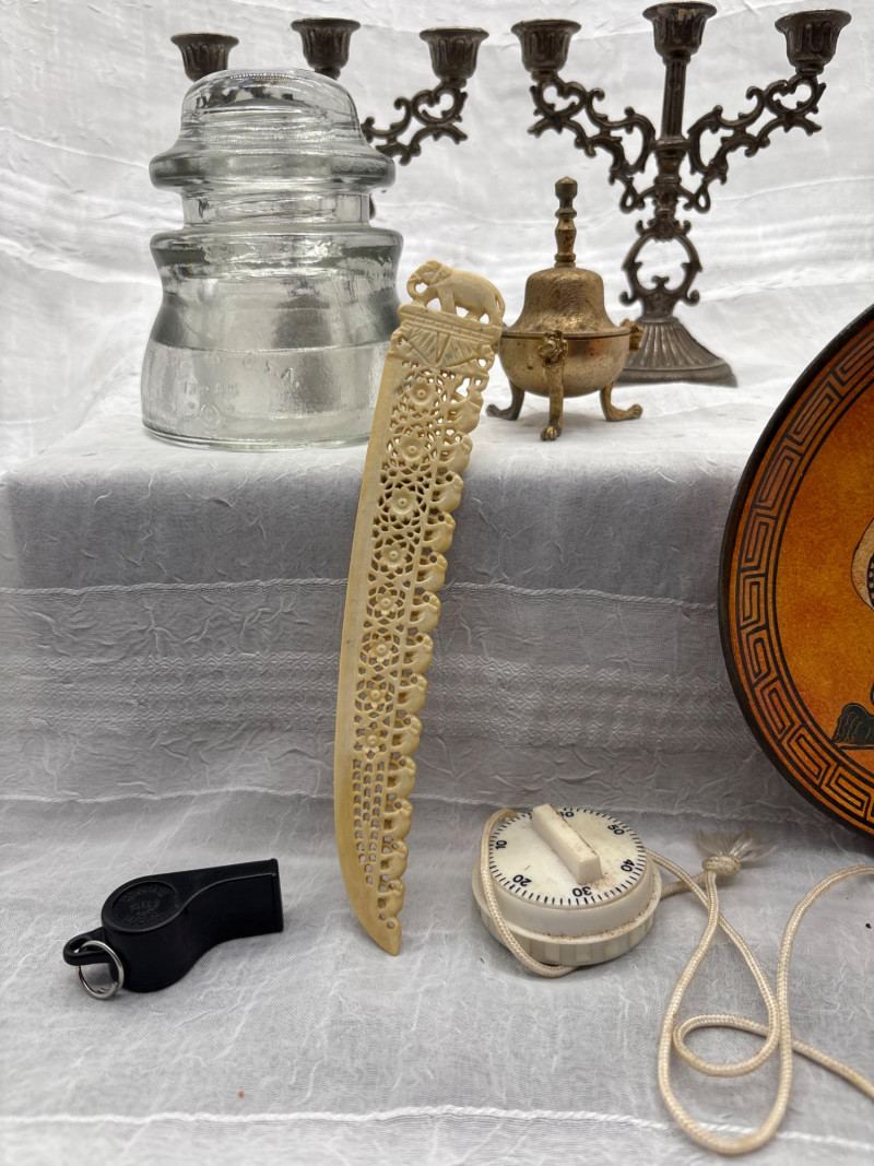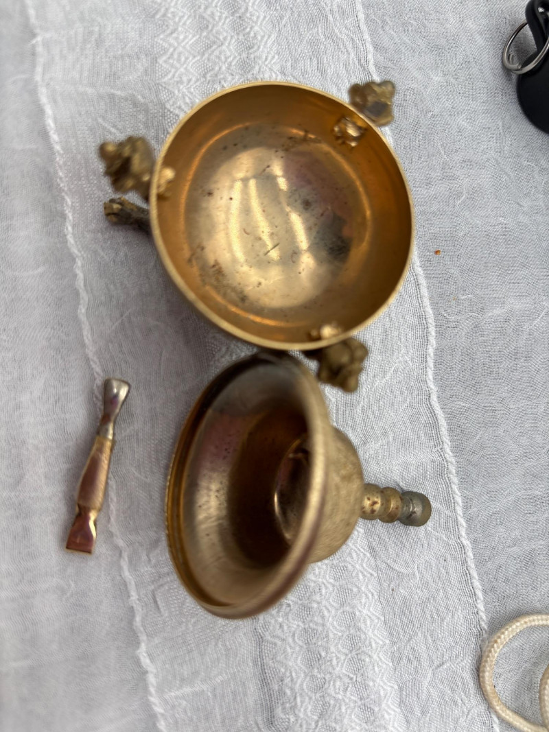 • Brass bell/incense burner style piece – approx. 3.5" tall