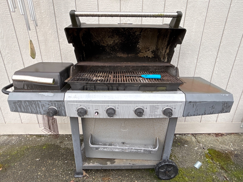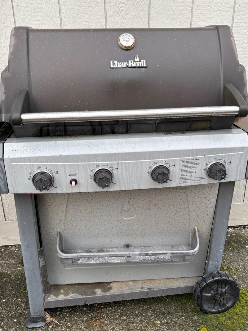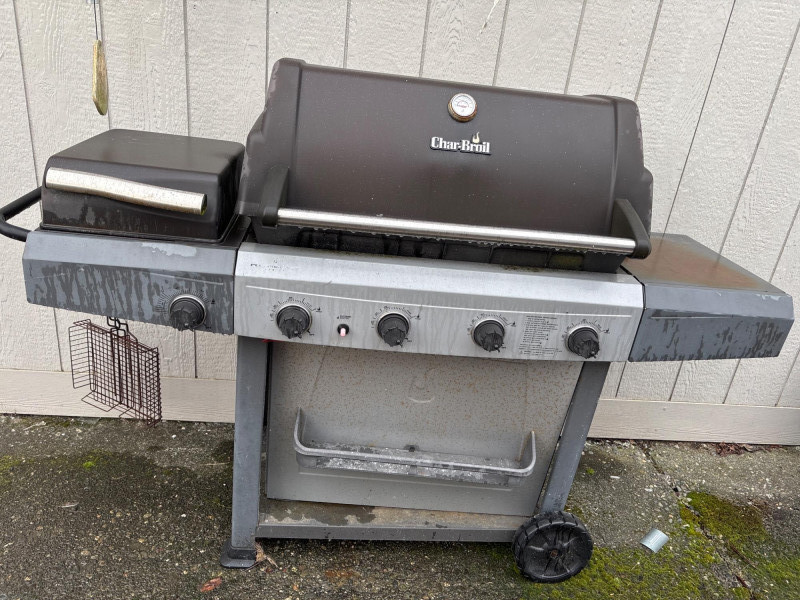 Classic Char-Broil gas grill with side burner—ready for a second life with a little cleanup. This full-size grill offers plenty of cooking space and a convenient side burner for sauces or sides. A great option for someone handy or looking for a budget-friendly BBQ setup. Features: Perfect for: Condition Likely needs cleaning and possible maintenance before regular use. Please review photos carefully—they are part of the description. Shipping