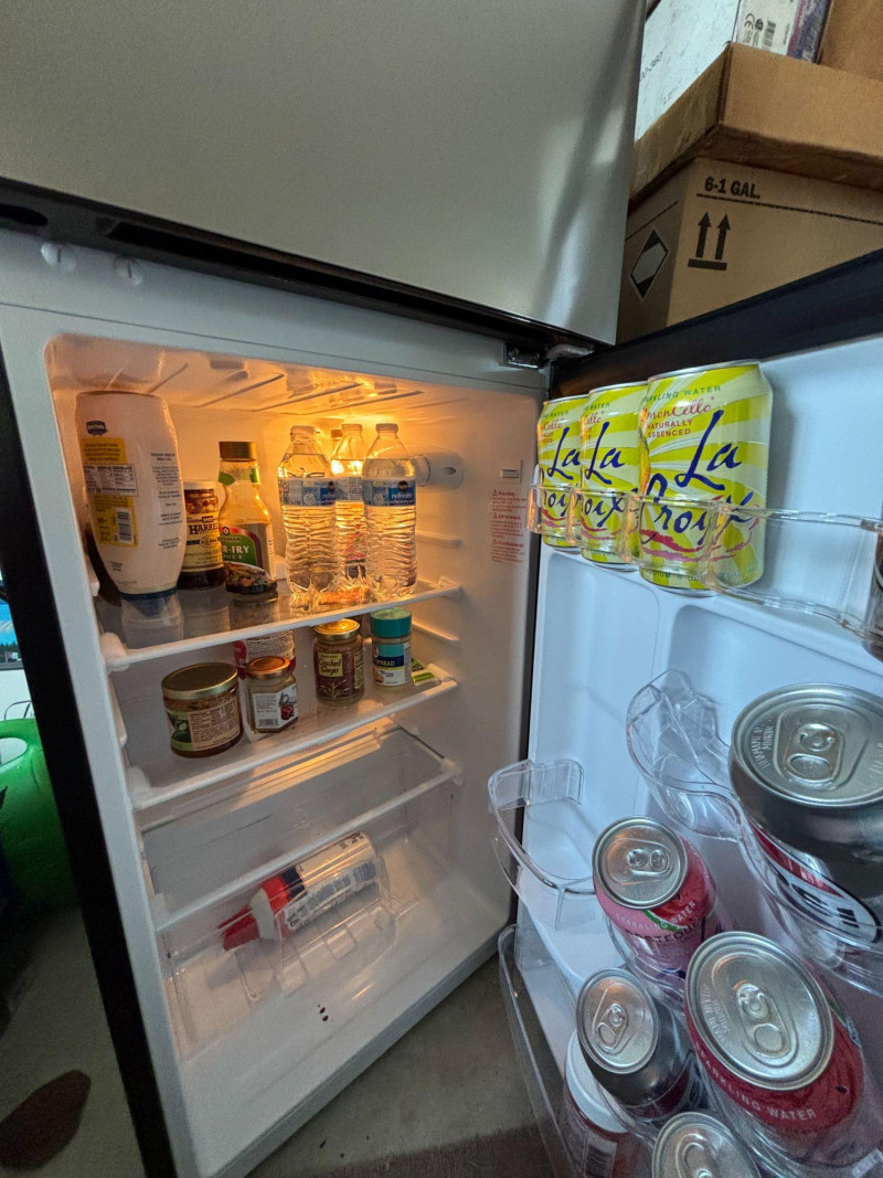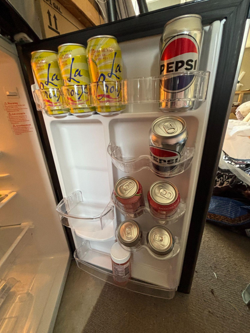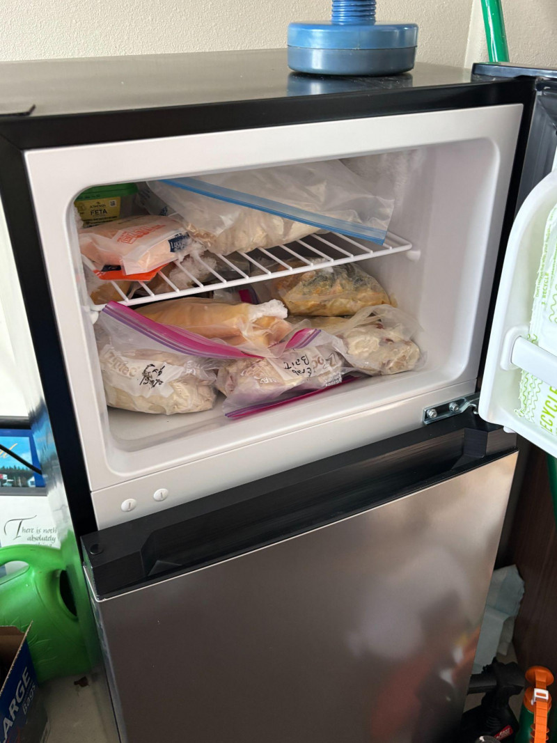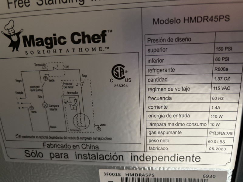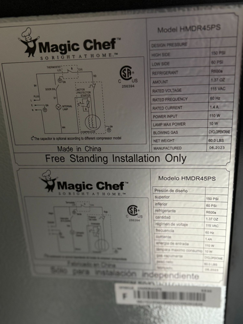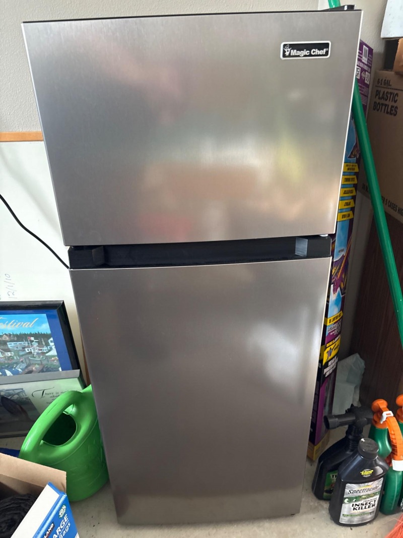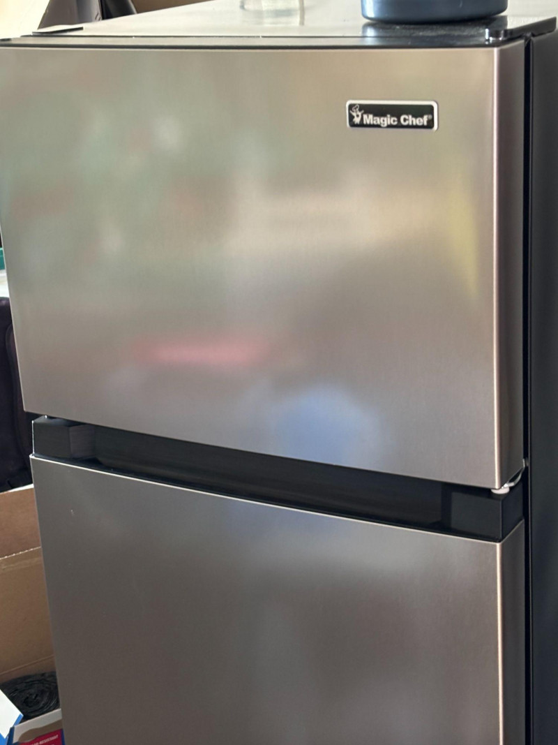 Clean, modern, and ready to go—this Magic Chef mini fridge with separate freezer is the perfect grab for dorm rooms, offices, garages, or extra household storage. The dual-door design gives you true freezer space up top and a dedicated refrigerator below—something buyers specifically look for over single-door units. The stainless-look finish keeps it looking sharp in any space. 2023 model, offering newer performance and efficiency compared to older units. Perfect size for drinks, meal prep, snacks, or overflow storage—plug it in and you’re set. Good used condition. Tested and cooling. Light wear from normal use. Please see photos for details. No