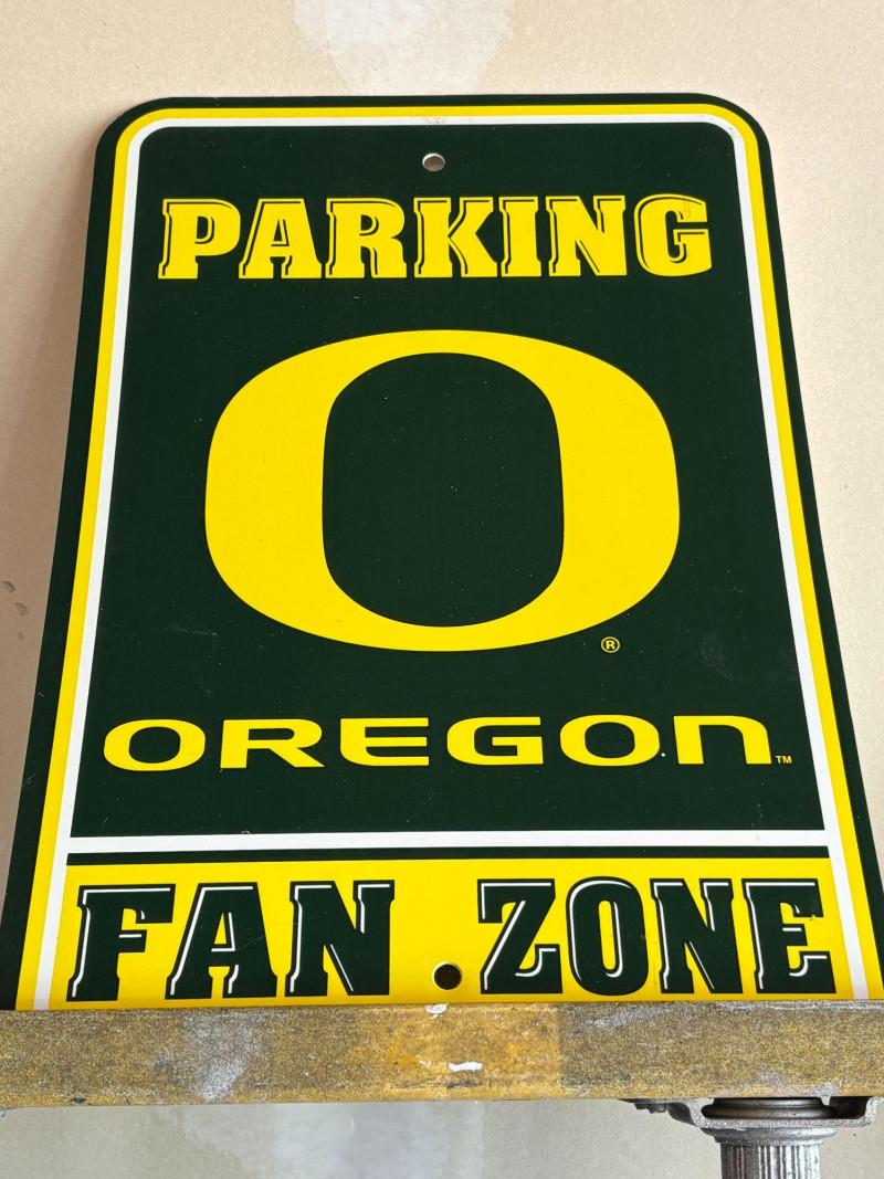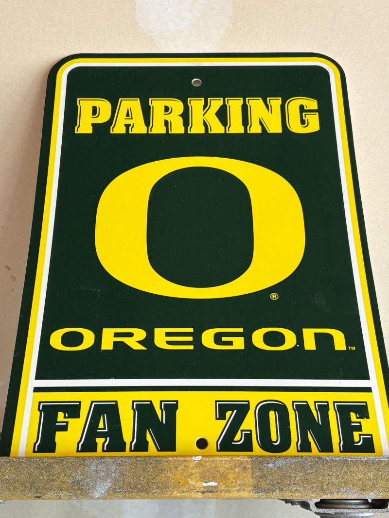 Lot # 181 - Oregon Ducks Cornhole Boards Set + Parking Sign Tailgate