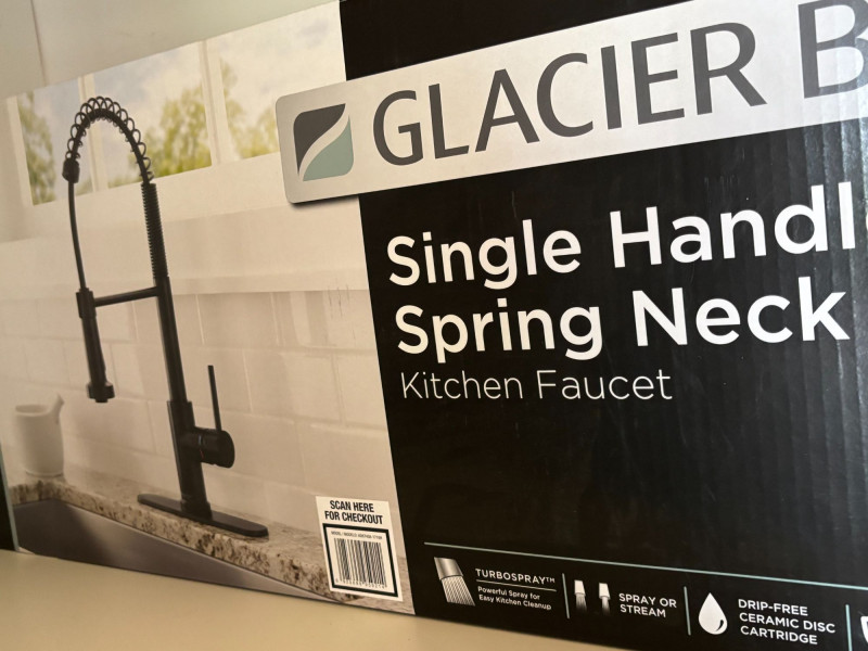 Upgrade your kitchen with this Glacier Bay single-handle spring neck faucet, new in box. Features a modern pull-down design with flexible spring neck, ideal for everyday kitchen use. Designed for easy control with a single handle and versatile spray functionality. Great for home renovation, rental upgrades, or resale. Boxed and ready for installation. New in box. Box may show light storage wear. Contents not fully inspected. Please see photos for details. Yes