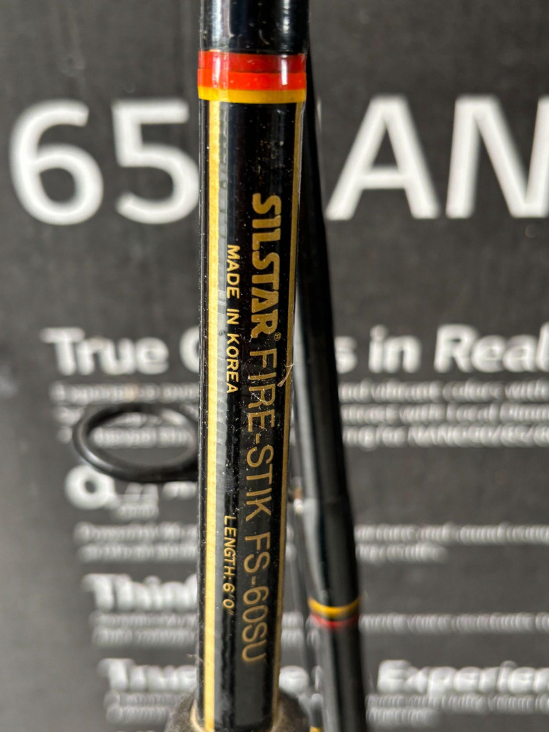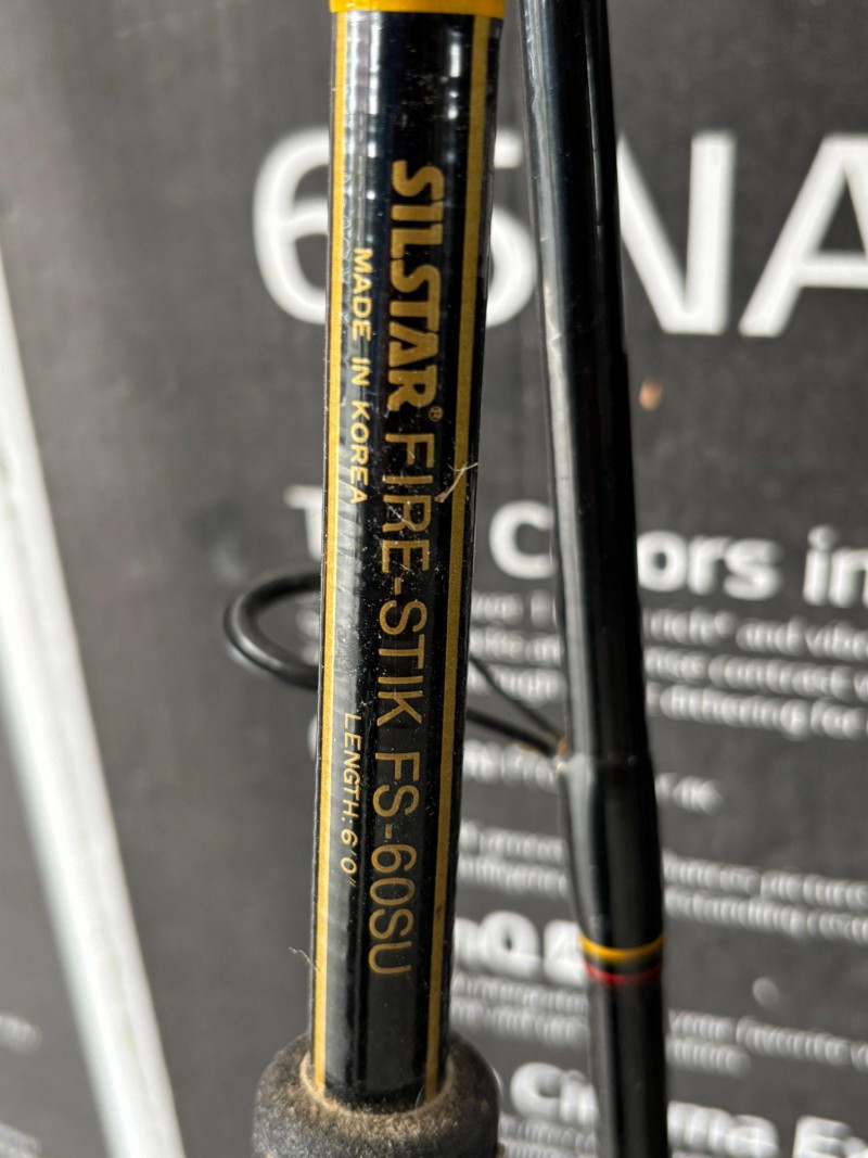 A solid and dependable Silstar Fire-Stik FS-60SU 6-foot fishing rod, known for its durability and classic construction. Made in Korea, this rod offers medium action performance, making it a versatile choice for a variety of fishing styles. Well-suited for freshwater or light saltwater use, this rod can handle a range of species and techniques, from casting to general-purpose fishing. A great option for anglers looking for a reliable rod or adding a vintage piece to their gear collection. Condition Shipping NO SHIPPING