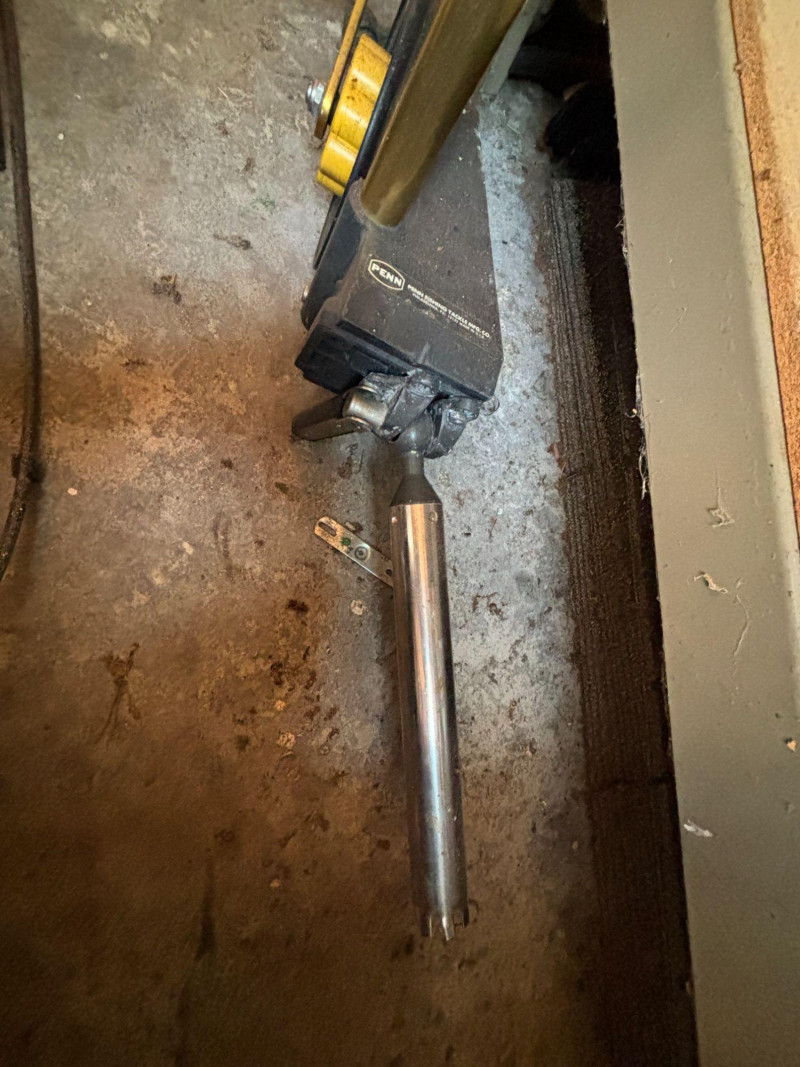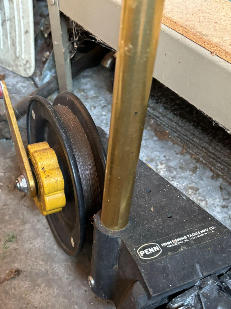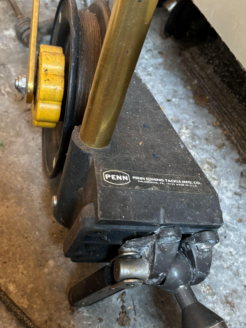 Vintage Penn Uni-Troll downrigger, built tough for serious trolling setups. Known for durability and reliability, Penn gear is trusted by anglers for both saltwater and freshwater use. Features a manual crank system with cable spool and sturdy mounting base—perfect for boat setups targeting salmon, lake trout, and other deep-water species. A solid piece for anyone looking to add or upgrade a trolling setup, or for collectors of classic Penn fishing equipment. Used condition. Shows wear from use and storage including surface rust on cable and general age-related wear. Untested. Please see photos for full condition details. No